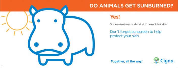 The goal was to develop a signage program to inform the park visitors about pertinent health issues when visiting the park. Sunburn, heat poisoning. The signs can be seen by small children and adults alike in a fun direct way.